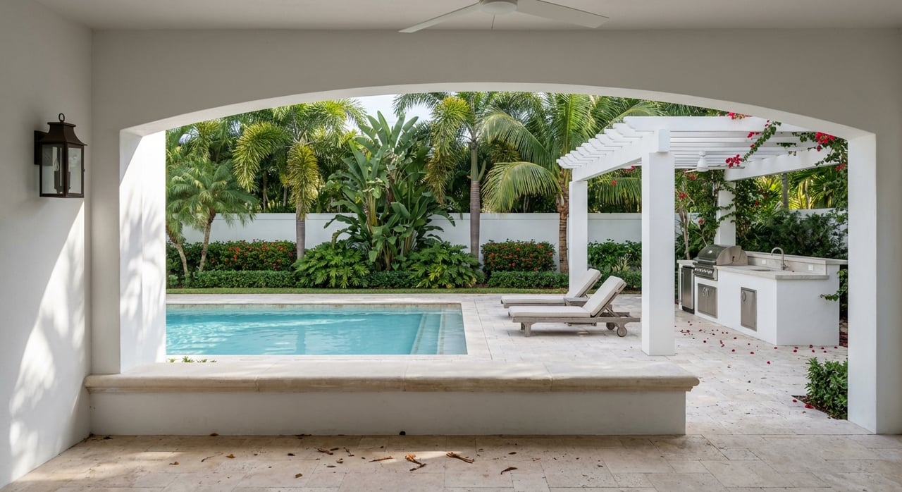 Fixed or motorized louvered pergolas offer shade and daylight control. In Miami-Dade coastal zones, they usually need engineered connections and anchorage to meet wind loads. Powder-coated aluminum and stainless steel hardware deliver strong corrosion resistance. Place structures to block west and southwest sun and consider integrated gutters for better water management.